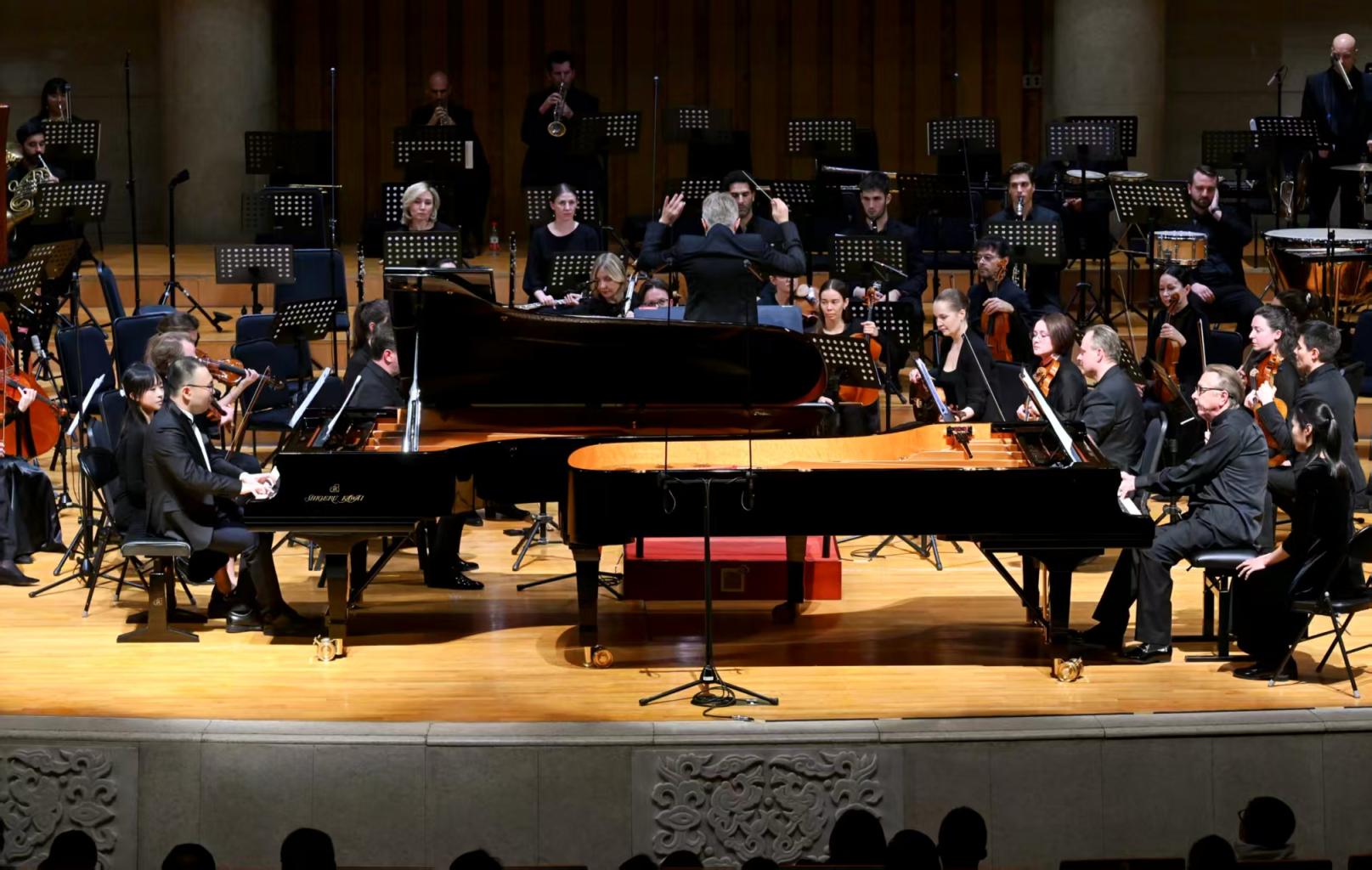 随后速盈配资,双钢琴协奏曲《瑞士幻想曲》展开一幅明丽多彩的音乐画卷。与《音乐记忆14首》呈现的回忆不同,这部写于2006年创作的作品更像普莱特涅夫与未来的对话。普莱特涅夫、安天旭的双钢琴与乐队的互动尤其精彩,钢琴声线在丰富的音响层次中起伏错落,牵引着4个乐章在浪漫的旋律、轻快的爵士感与质朴的民间舞曲之间自由切换。