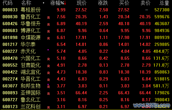 化工板块午后强势上扬,金牛化工、中盐化工、三友化工、中泰化学(维权)、宝丰能源等均涨停。